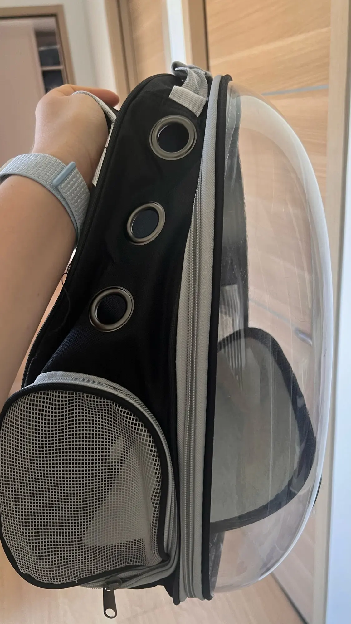 A sleek, space-inspired carrier that combines function, breathability, and futuristic style — built for modern pet parents on the go.